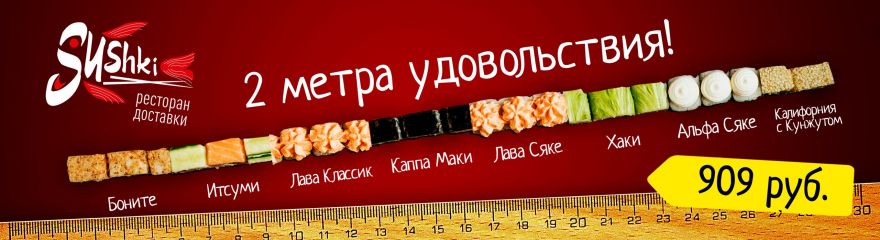 В нашем ресторане японской кухни «Сушки» Вы можете заказать суши в Томске. Помимо роллов, суши, пиццы, в нашем ресторане доставки вы можете заказать суши-пиццу, сенд-роллы, салаты, горячие блюда, десерты, напитки и добавки. Если вы делаете заказ в первый раз, обратите внимание на акцию «Новый клиент» и на другие специальные предложения в разделе «Акции».