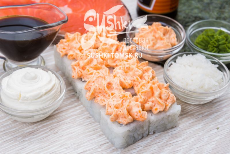 Состав: Рис, сыр творожный, лосось.