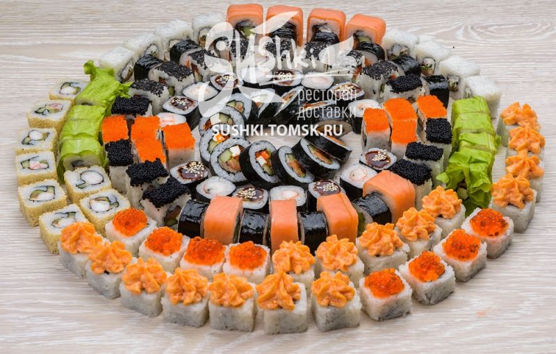Состав: ролл "Икура", ролл "Итсуми", ролл "Лава сяке", ролл "Лава эби", ролл "Лариссон", ролл "Калифорния с кунжутом", ролл "Нобунага", ролл "Фетаки", ролл "Хаки", ролл "Спайс", ролл "Осака", ролл "Сяке маки", ролл "Капа маки", ролл "Унаги маки", ролл "Эби маки".
