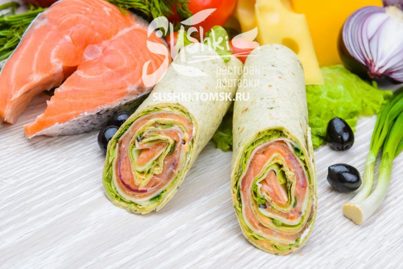 Состав: Соус "Средиземноморский", креветка, лист салата, сыр "Моцарелла", помидоры, красный лук.